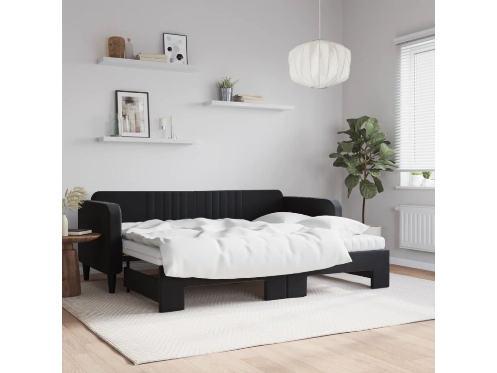 Válenda s přistýlkou a matracemi černá 80 x 200 cm samet 3197084