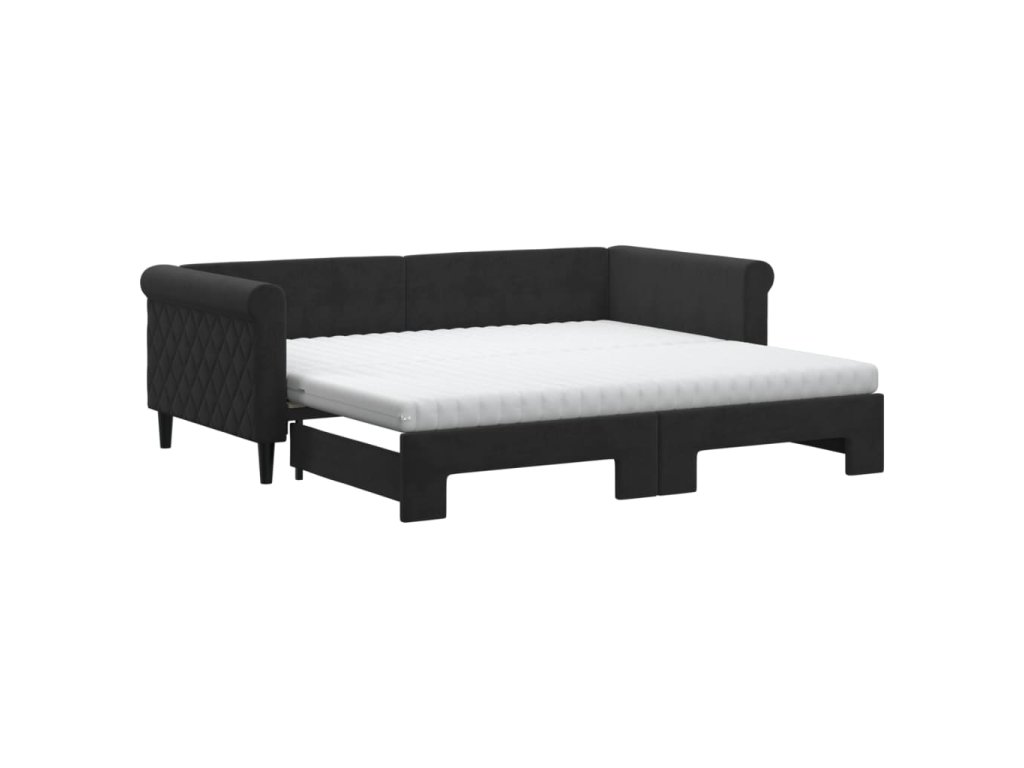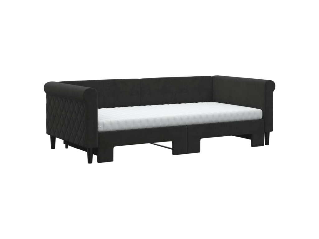 Válenda s přistýlkou a matracemi černá 90 x 190 cm samet 3197810