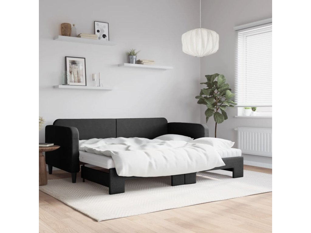 Válenda s přistýlkou a matracemi černá 90 x 200 cm textil 3196836