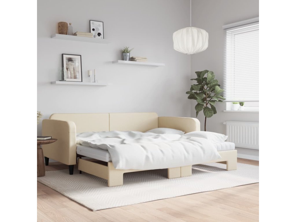 Válenda s přistýlkou a matracemi krémová 100 x 200 cm textil 3196843