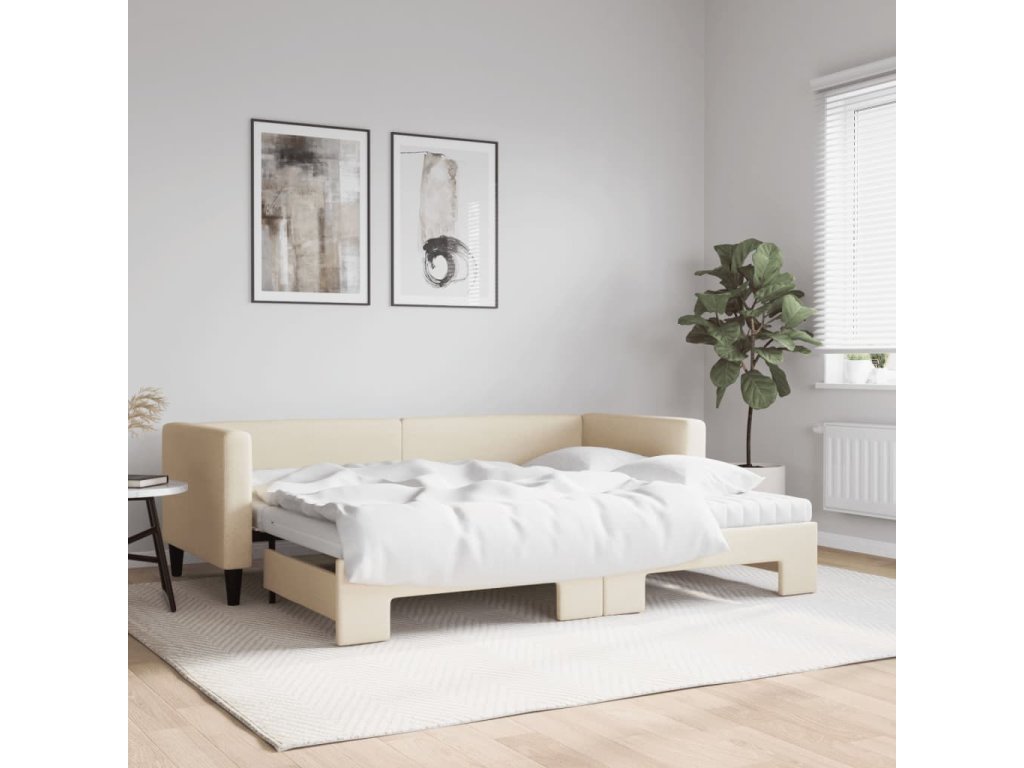 Válenda s přistýlkou a matracemi krémová 80 x 200 cm textil 3196595