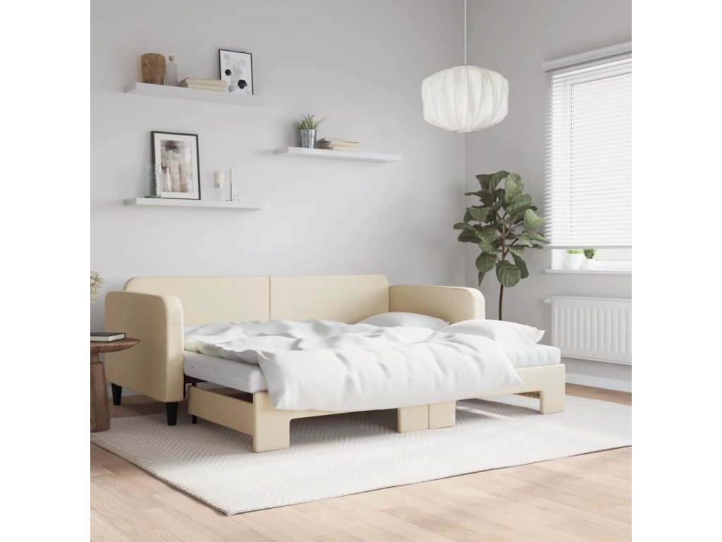 Válenda s přistýlkou a matracemi krémová 90 x 200 cm textil 3196838