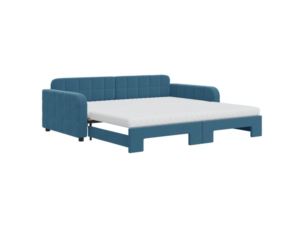 Válenda s přistýlkou a matracemi modrá 100 x 200 cm samet 3196959
