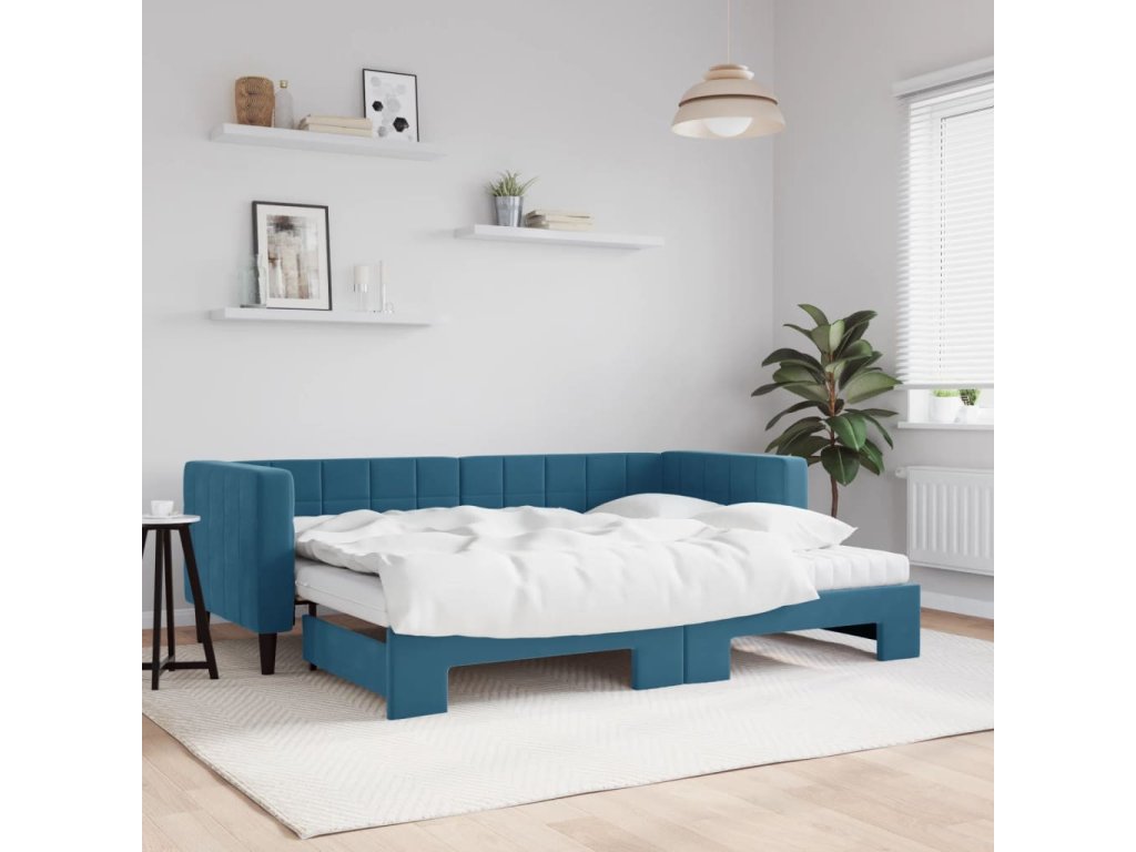 Válenda s přistýlkou a matracemi modrá 80 x 200 cm samet 3196707