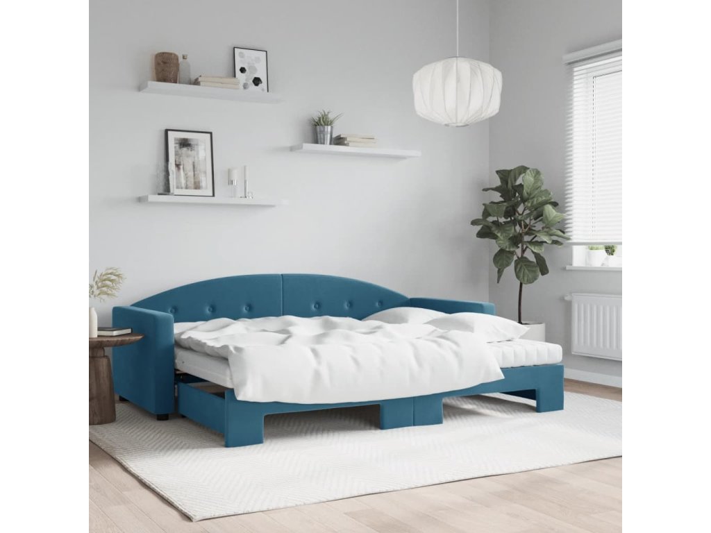 Válenda s přistýlkou a matracemi modrá 80 x 200 cm samet 3197317