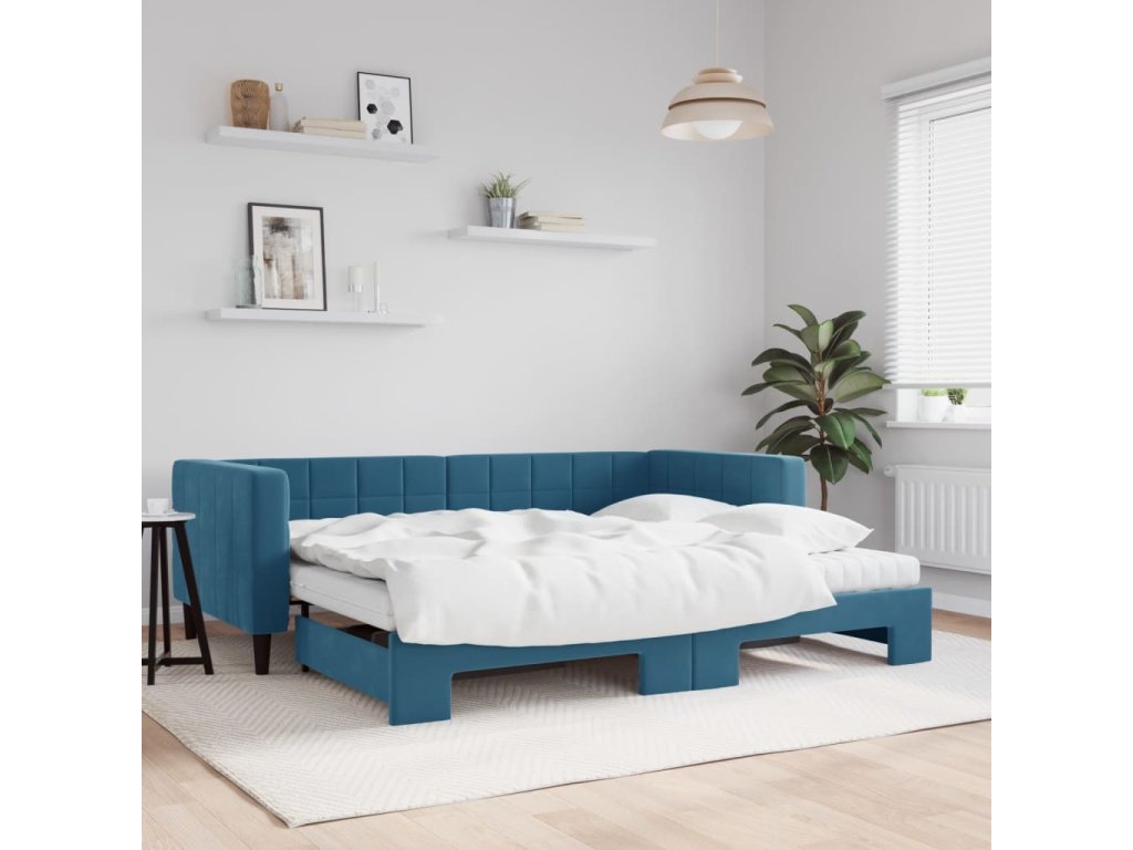 Válenda s přistýlkou a matracemi modrá 90 x 200 cm samet 3196714