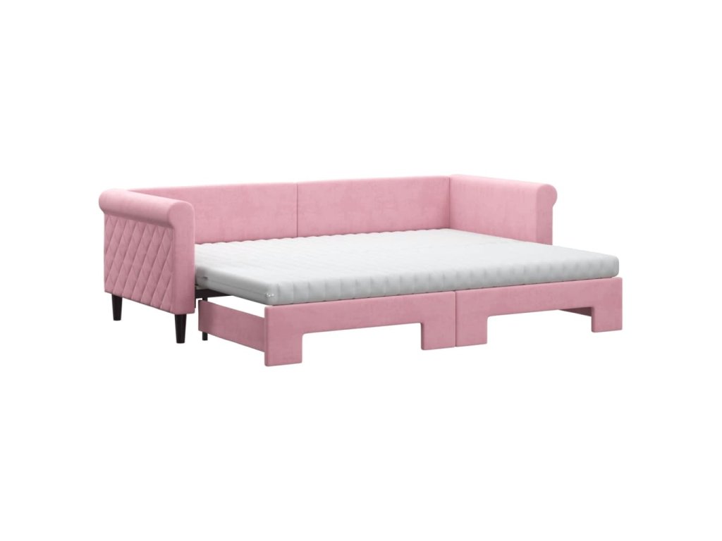 Válenda s přistýlkou a matracemi růžová 80 x 200 cm samet 3197791