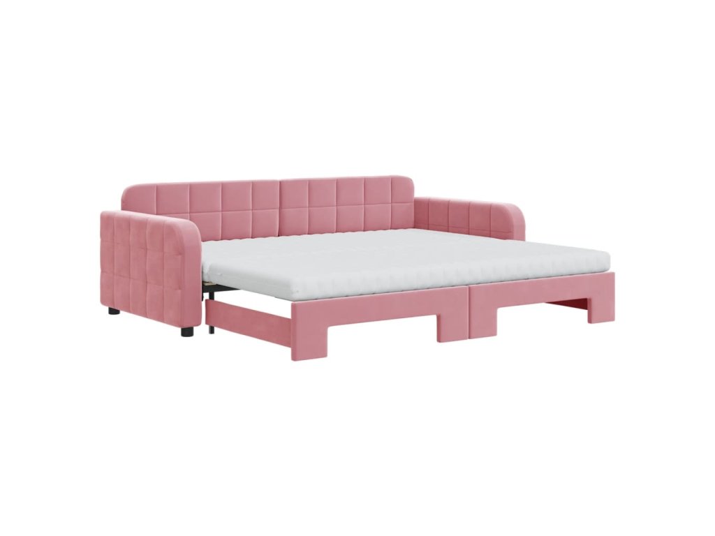 Válenda s přistýlkou a matracemi růžová 90 x 200 cm samet 3196956