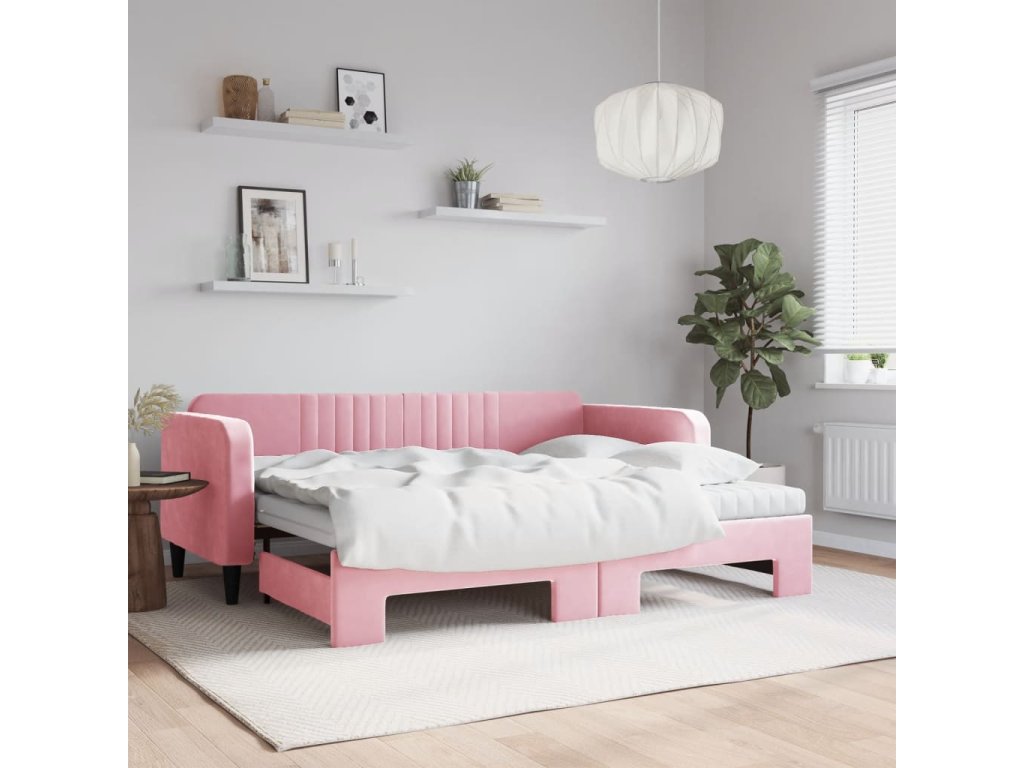 Válenda s přistýlkou a matracemi růžová 90 x 200 cm samet 3197090