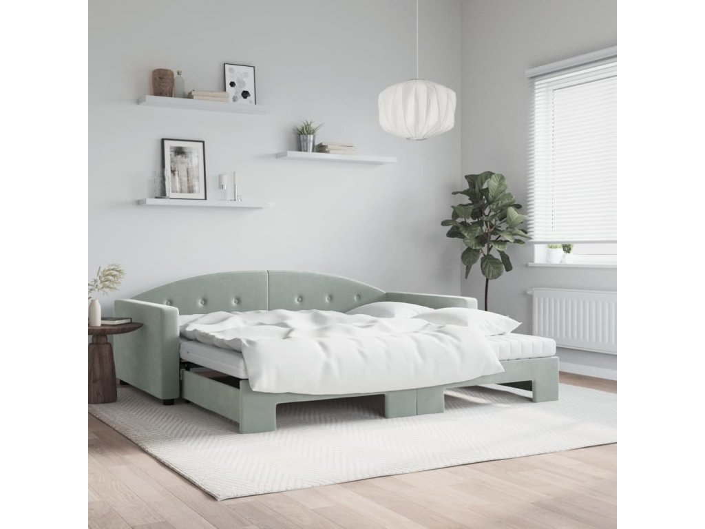 Válenda s přistýlkou a matracemi světle šedá 100x200 cm samet 3197332