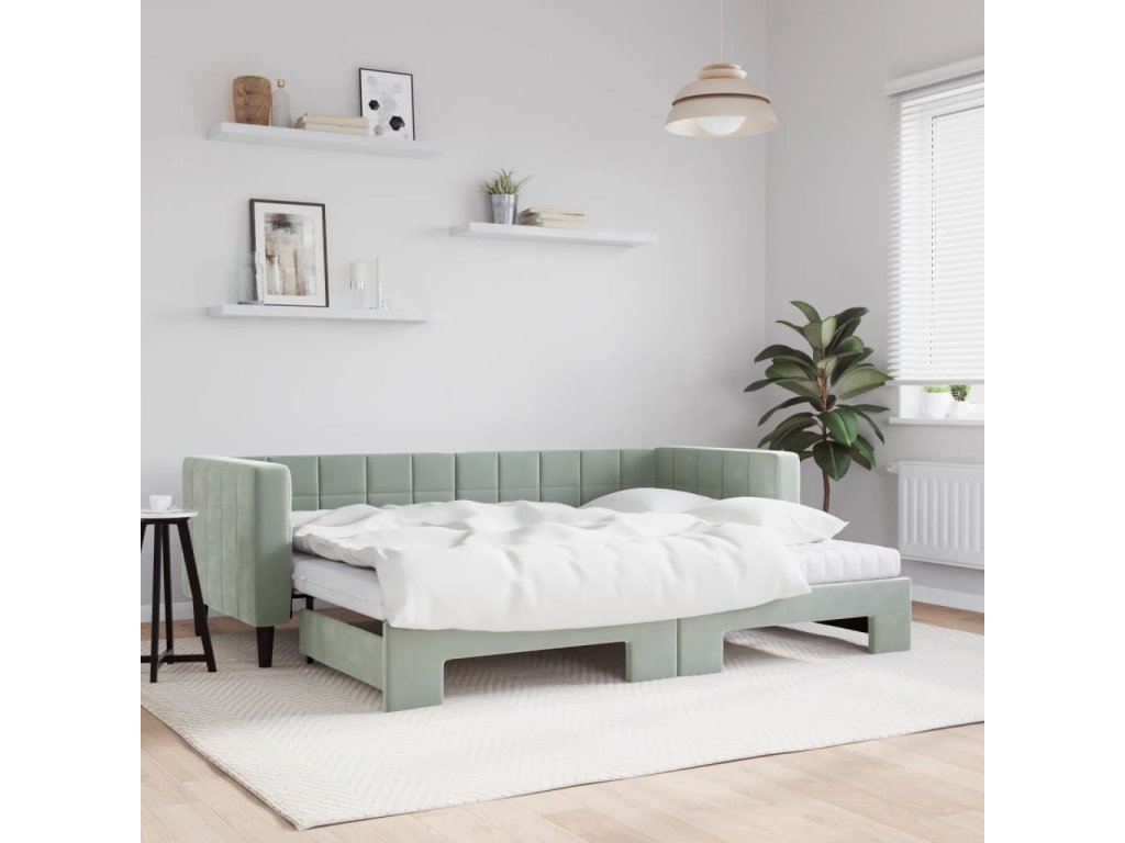 Válenda s přistýlkou a matracemi světle šedá 80 x 200 cm samet 3196708