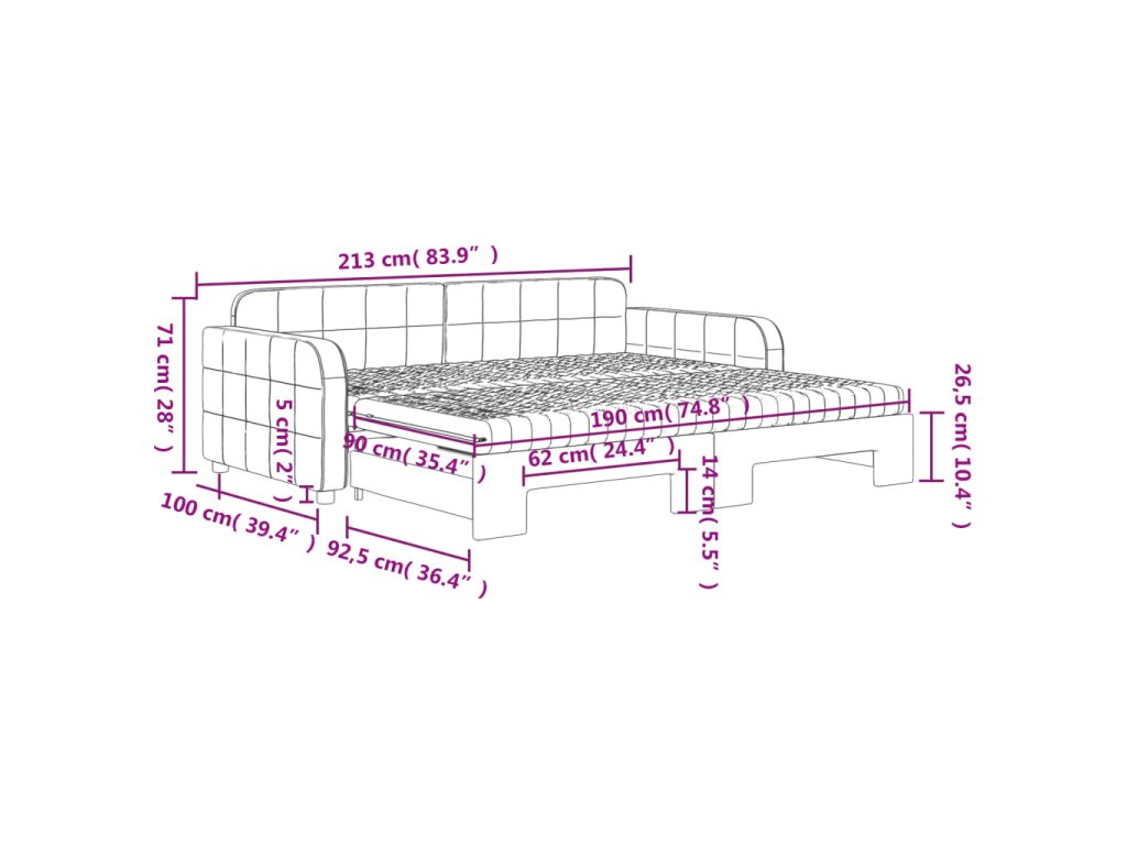 - Rozměry (nevysunuté): 213 x 100 x 71 cm (D x Š x V)