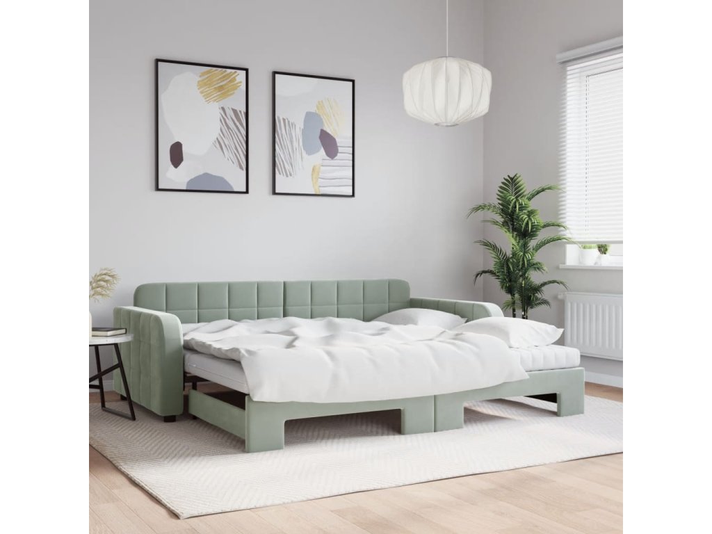 Válenda s přistýlkou a matracemi světle šedá 90 x 190 cm samet 3196966
