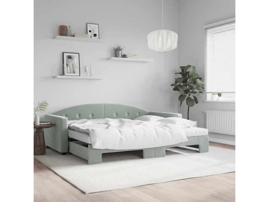 Válenda s přistýlkou a matracemi světle šedá 90 x 190 cm samet 3197338