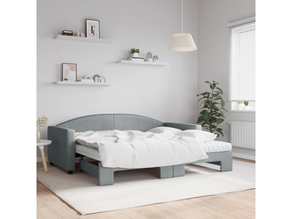 Válenda s přistýlkou a matracemi světle šedá 90 x 190 cm textil 3197216