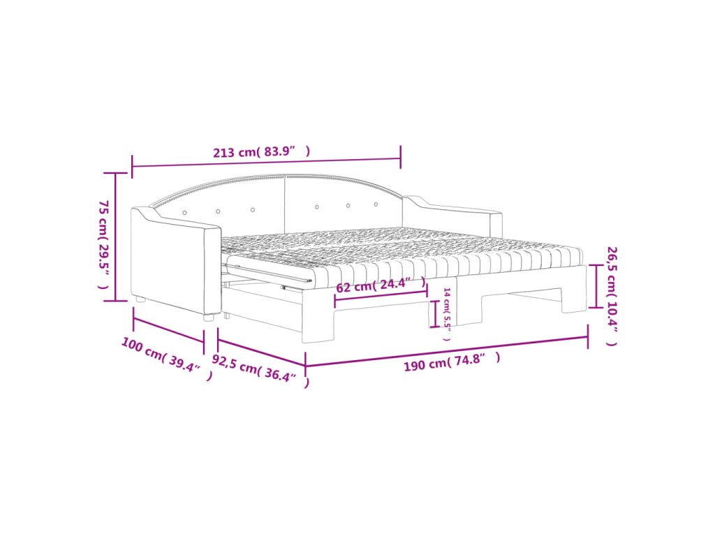 - Rozměry (nevysunuté): 213 x 100 x 75 cm (D x Š x V)