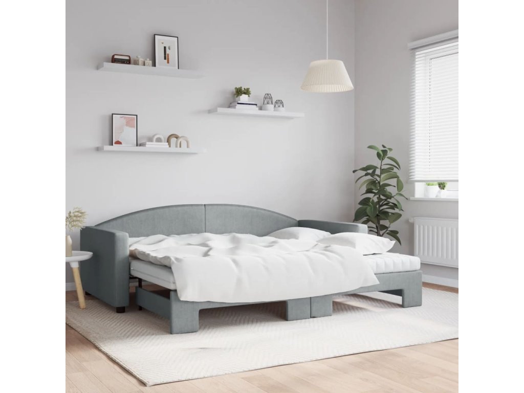 Válenda s přistýlkou a matracemi světle šedá 90 x 200 cm textil 3197206