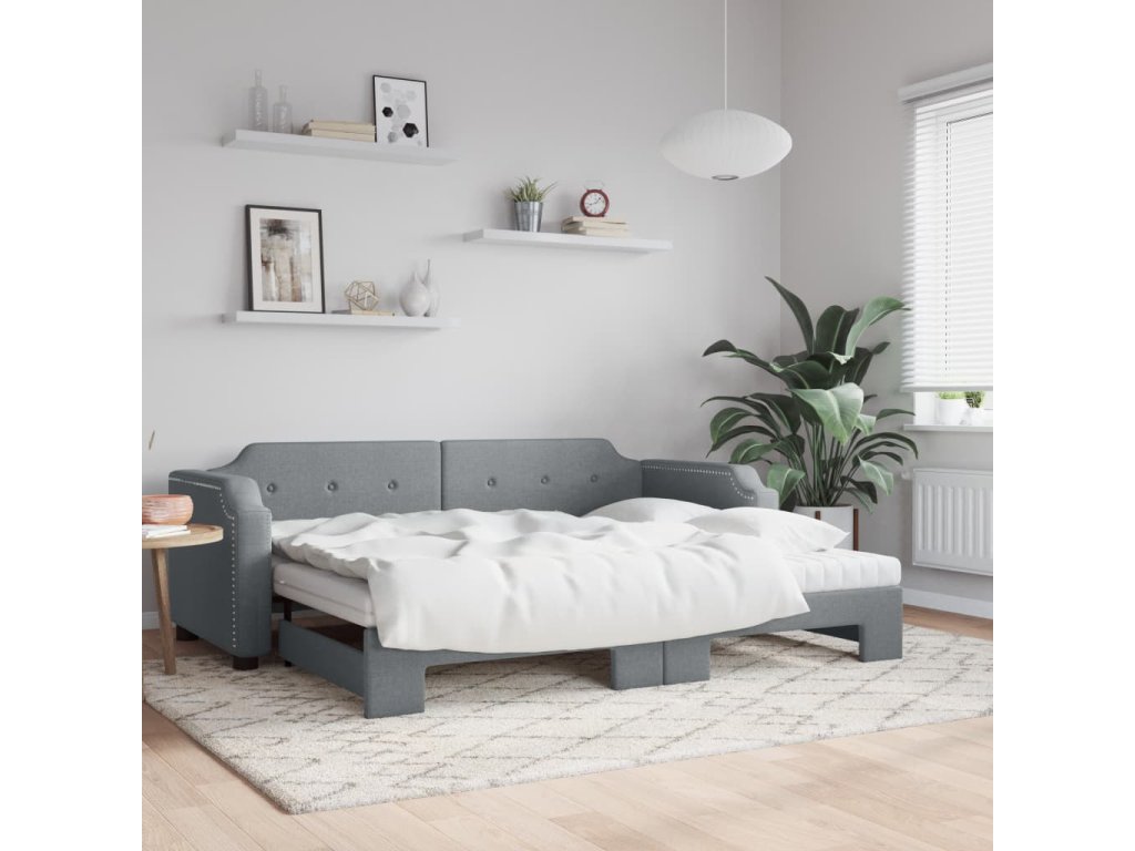 Válenda s přistýlkou a matracemi světle šedá 90 x 200 cm textil 3197652