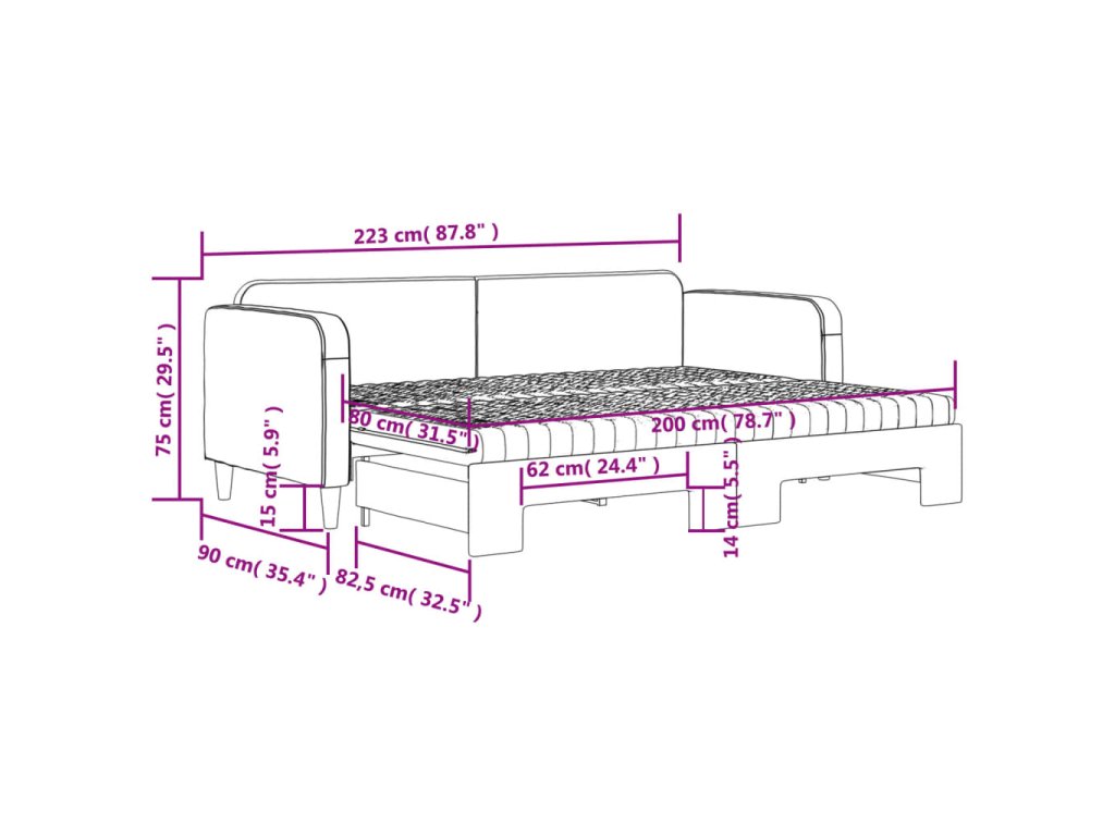- Rozměry (nevysunuté): 223 x 90 x 75 cm (D x Š x V)