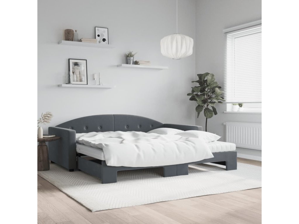 Válenda s přistýlkou a matracemi tmavě šedá 100 x 200 cm samet 3197333