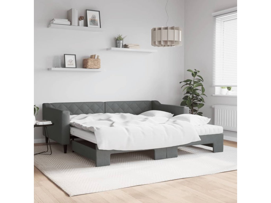 Válenda s přistýlkou a matracemi tmavě šedá 100 x 200 cm textil 3197450