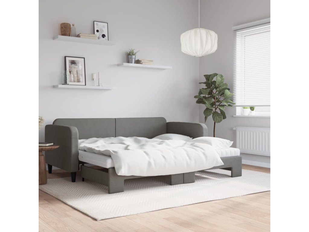 Válenda s přistýlkou a matracemi tmavě šedá 90 x 190 cm textil 3196845