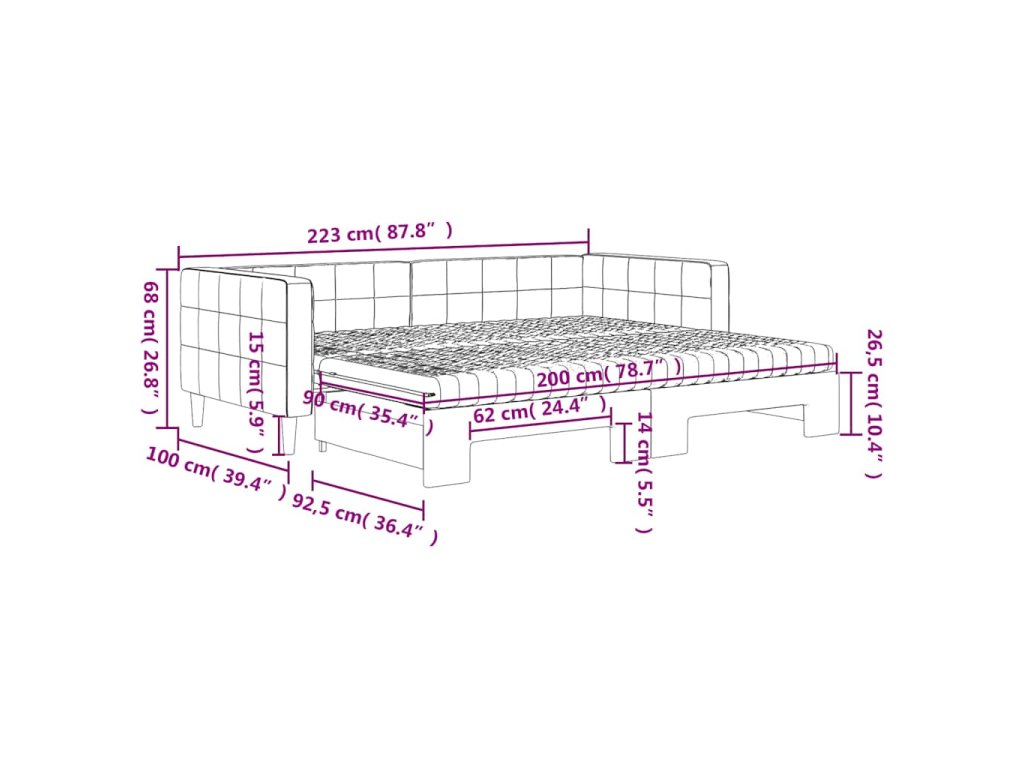 Válenda s přistýlkou a matracemi tmavě šedá 90 x 200 cm samet 3196716