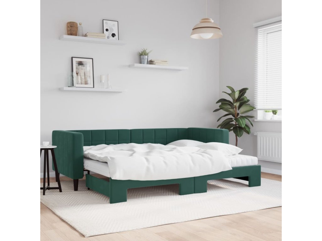 Válenda s přistýlkou a matracemi tmavě zelená 80 x 200 cm samet 3196710