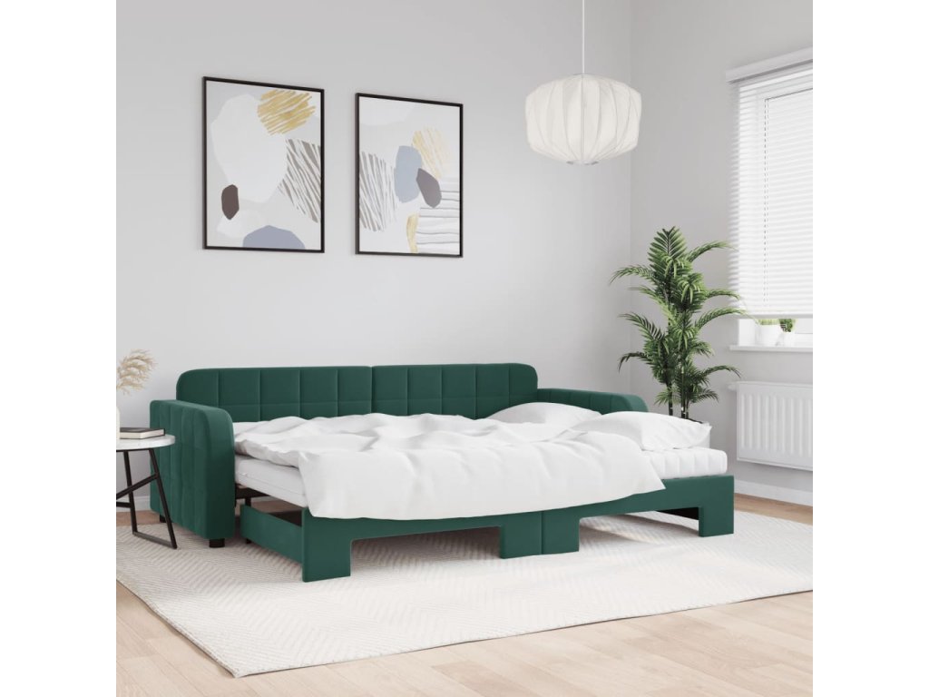 Válenda s přistýlkou a matracemi tmavě zelená 80 x 200 cm samet 3196948