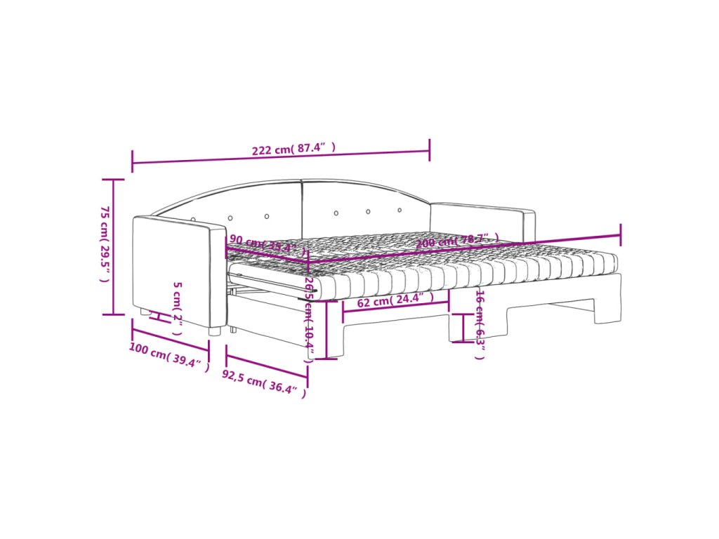 - Rozměry (nevysunuté): 222 x 100 x 75 cm (D x Š x V)