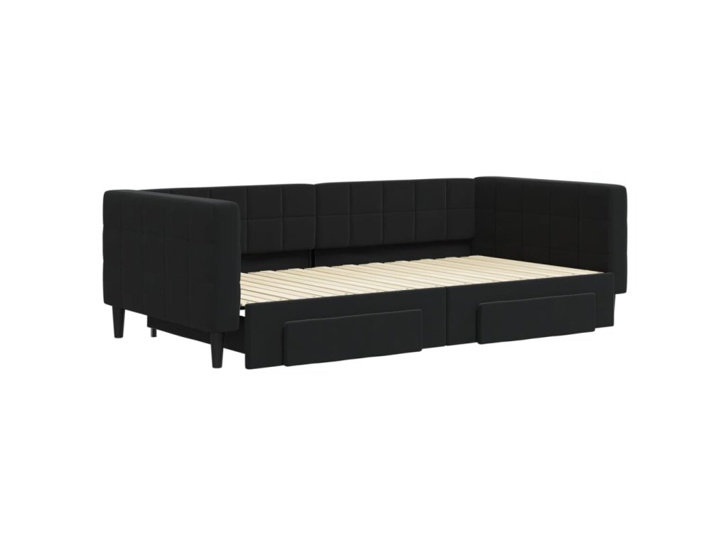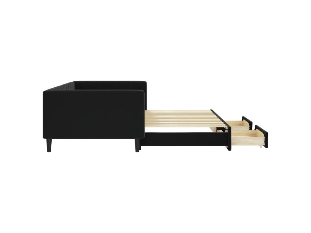 Válenda s přistýlkou a zásuvkami černá 100 x 200 cm samet 3196750