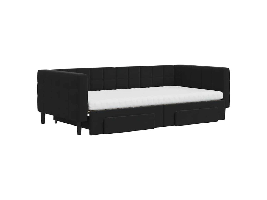 Válenda s přistýlkou a zásuvkami černá 100 x 200 cm samet 3196774