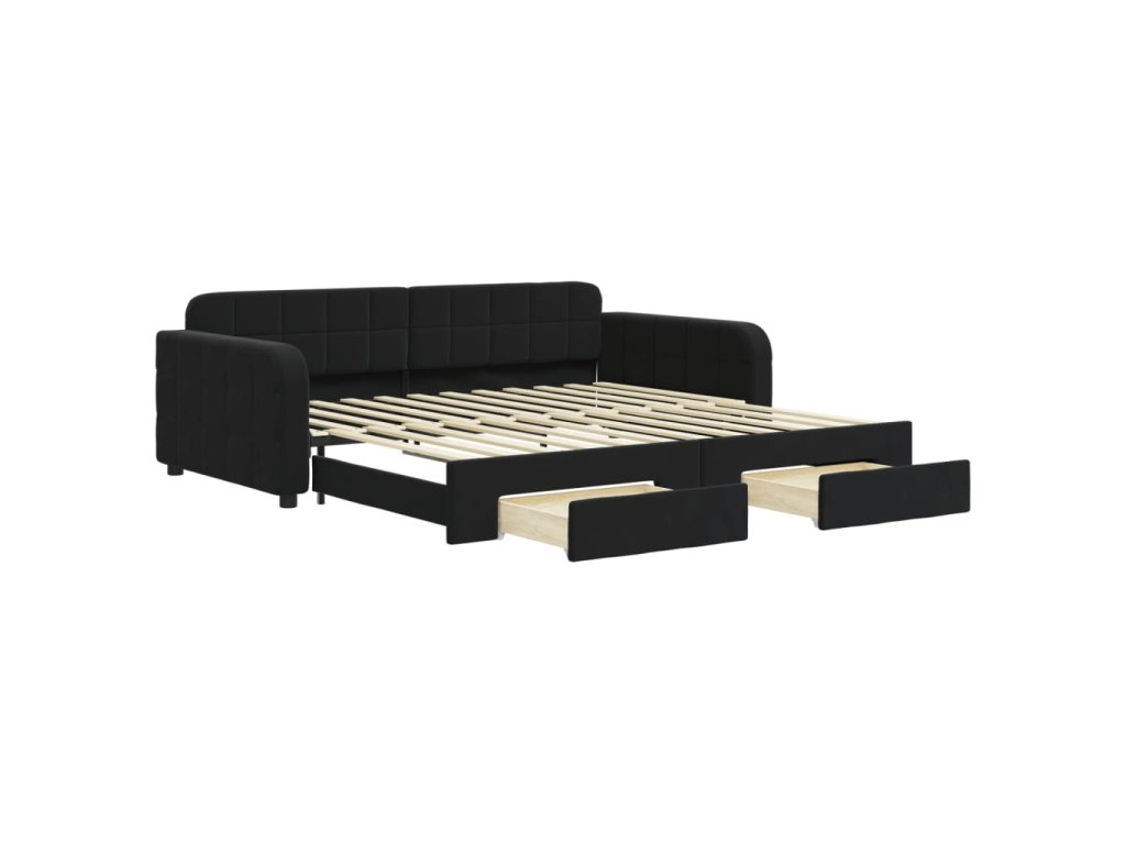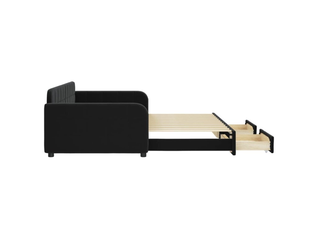 Válenda s přistýlkou a zásuvkami černá 100 x 200 cm samet 3196988