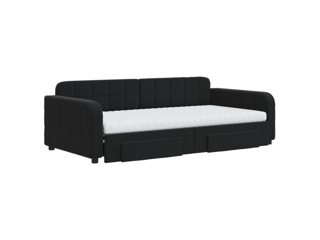 Válenda s přistýlkou a zásuvkami černá 100 x 200 cm samet 3197012