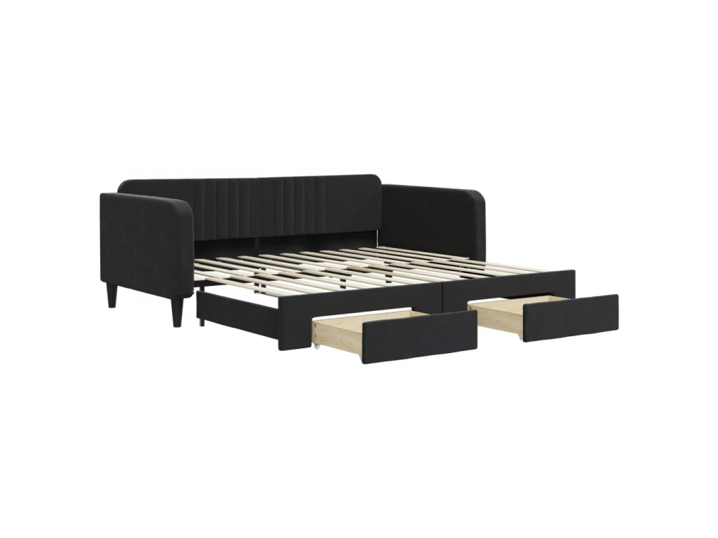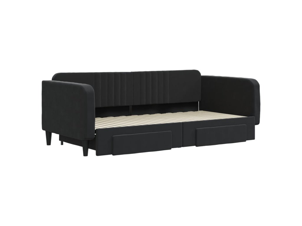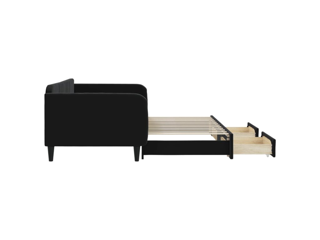 Válenda s přistýlkou a zásuvkami černá 100 x 200 cm samet 3197122