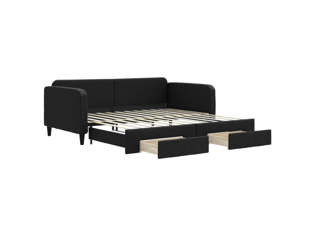Válenda s přistýlkou a zásuvkami černá 100 x 200 cm textil 3196859
