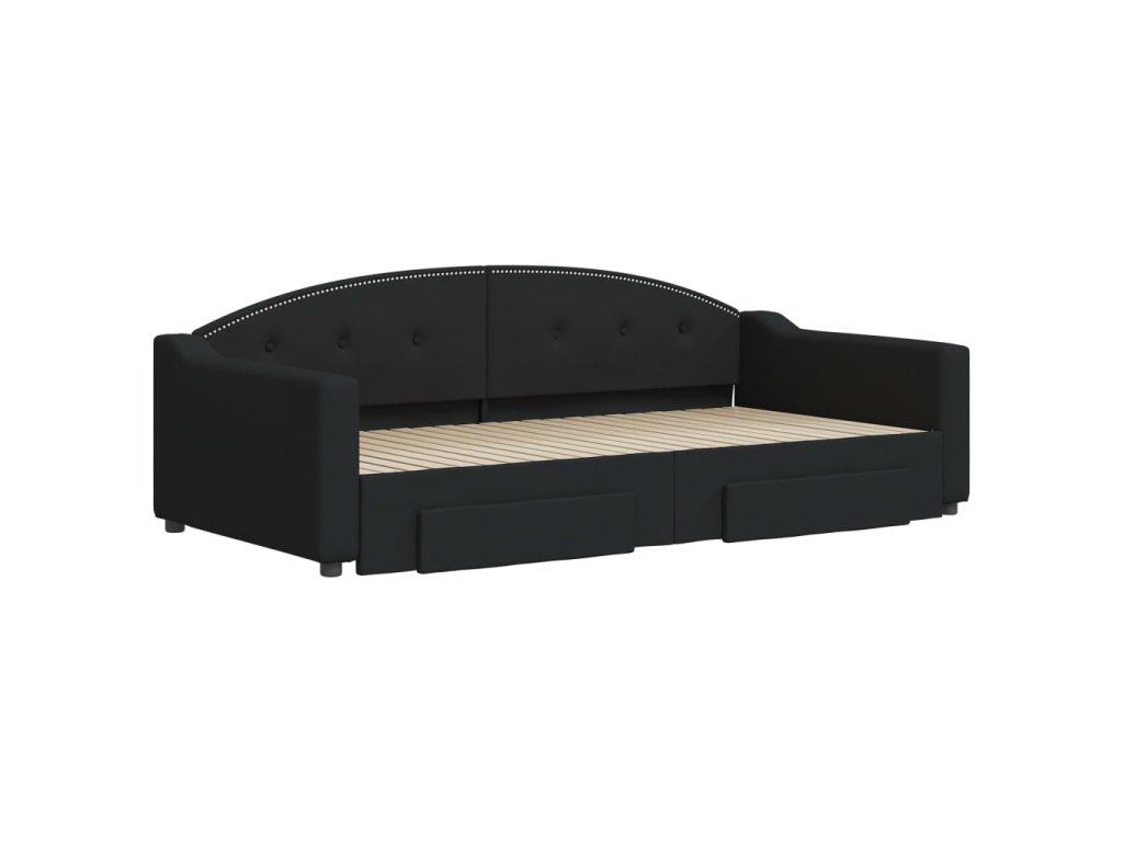 Válenda s přistýlkou a zásuvkami černá 100 x 200 cm textil 3197573