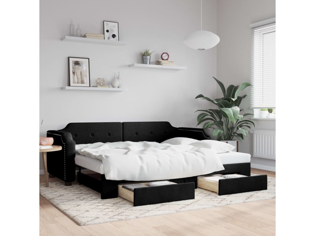 Válenda s přistýlkou a zásuvkami černá 80 x 200 cm textil 3197667