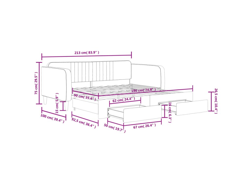 - Rozměry (nevysunuté): 213 x 100 x 75 cm (D x Š x V)