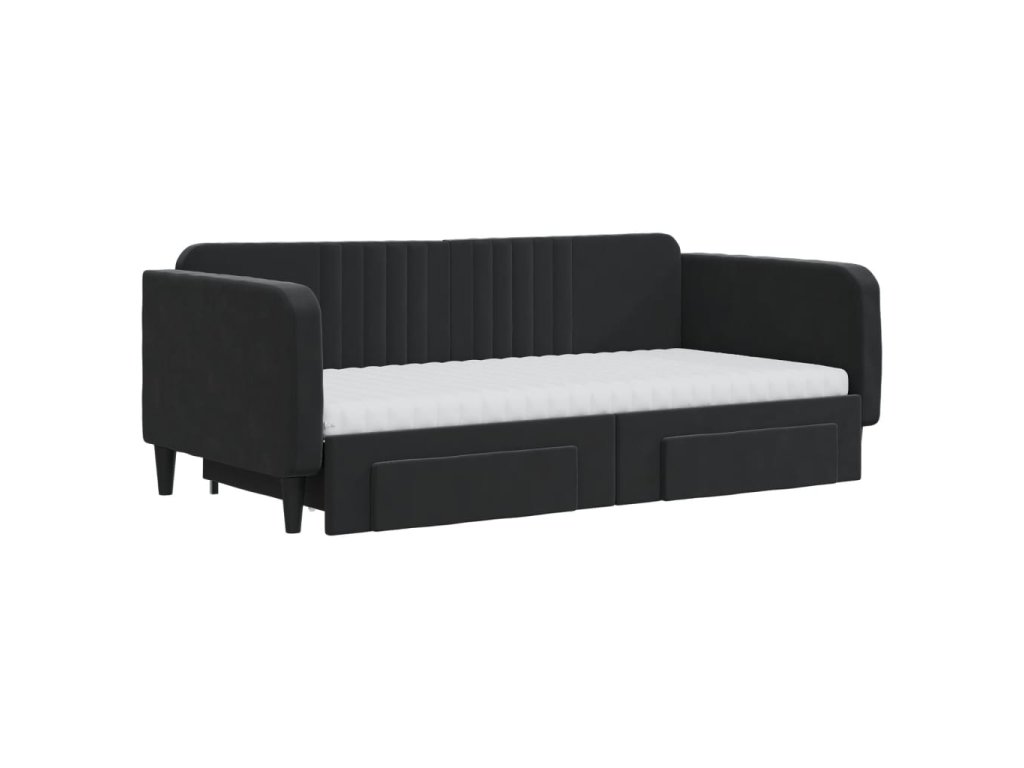 Válenda s přistýlkou a zásuvkami černá 90 x 190 cm samet 3197150