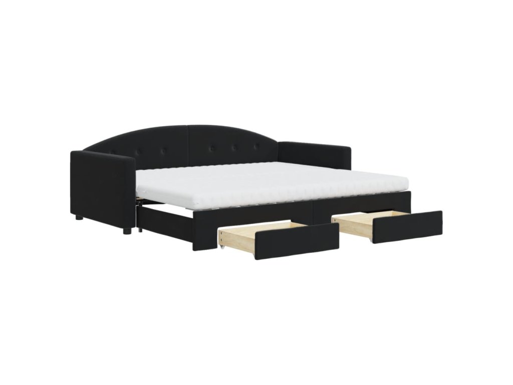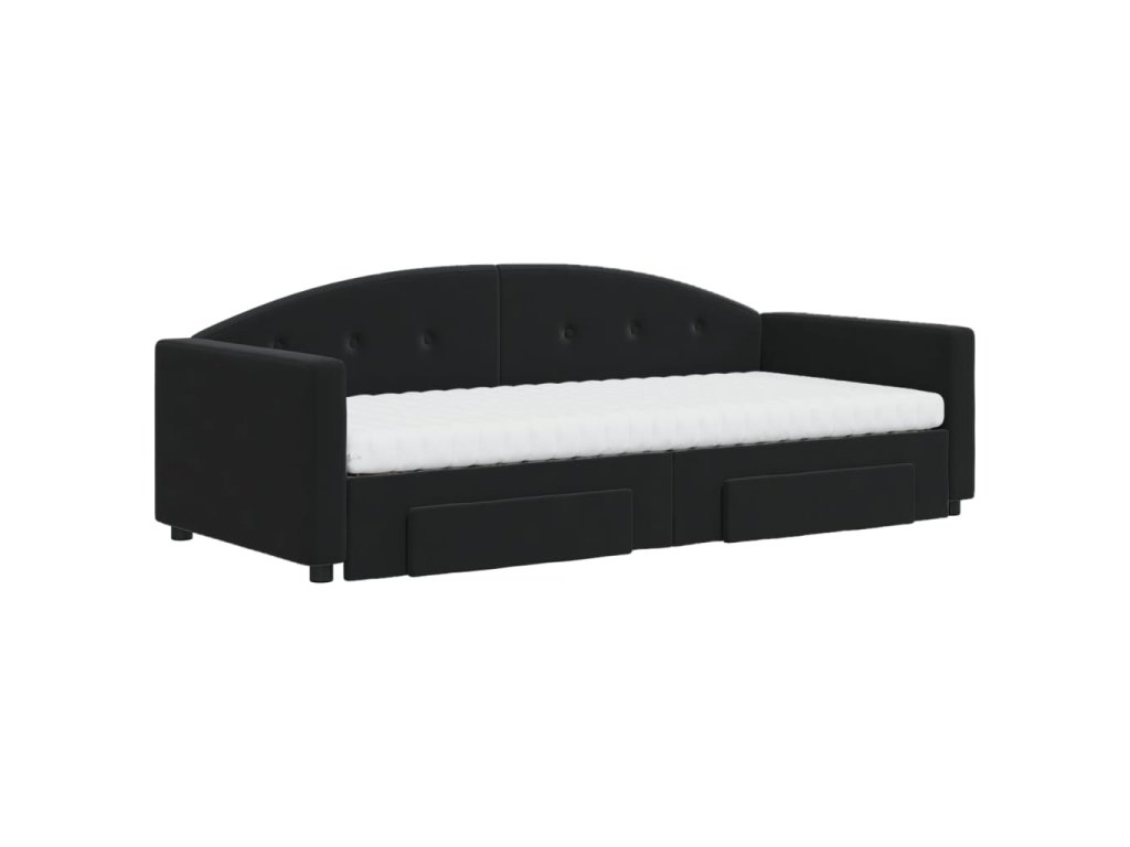 Válenda s přistýlkou a zásuvkami černá 90 x 190 cm samet 3197388