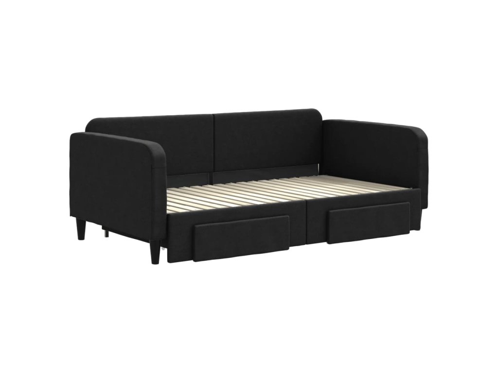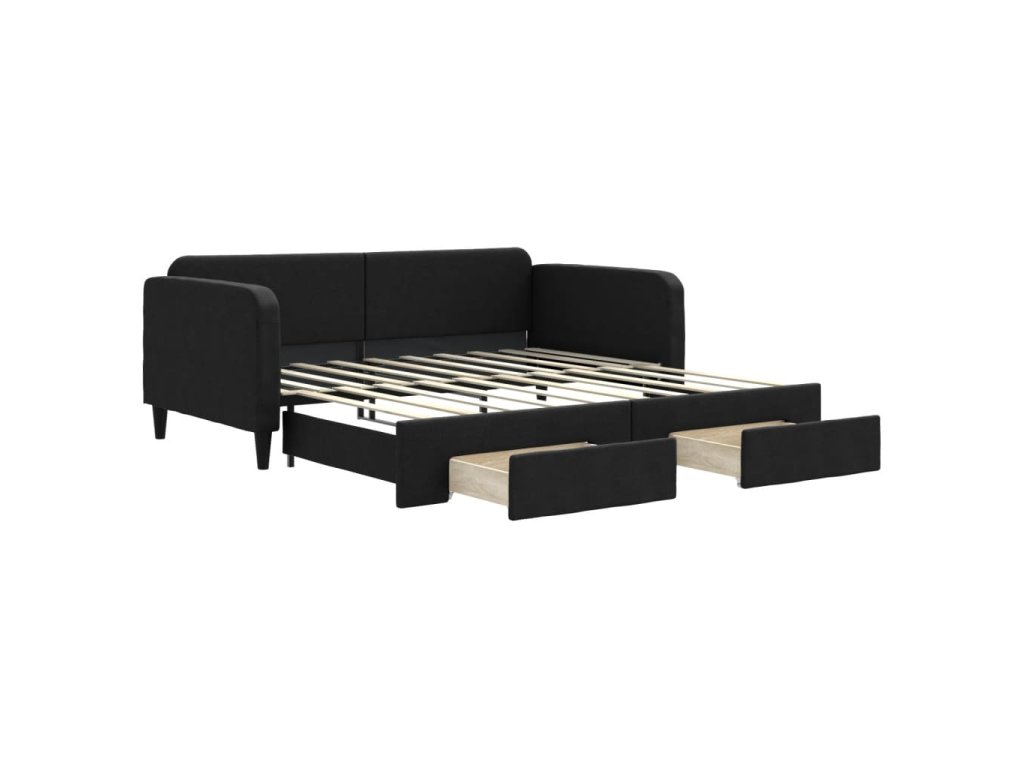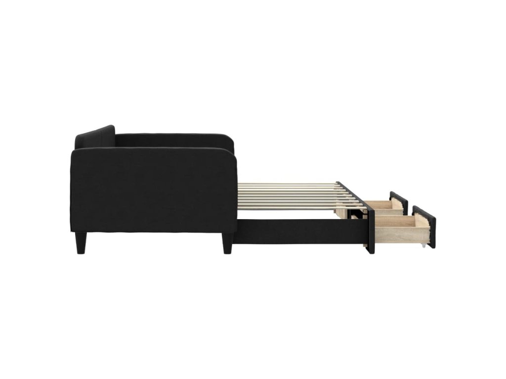 Válenda s přistýlkou a zásuvkami černá 90 x 190 cm textil 3196864