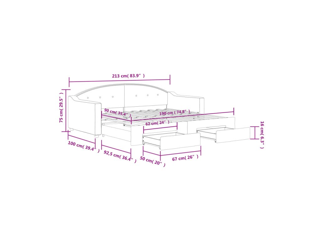 - Rozměry (nevysunuté): 213 x 100 x 75 cm (D x Š x V)