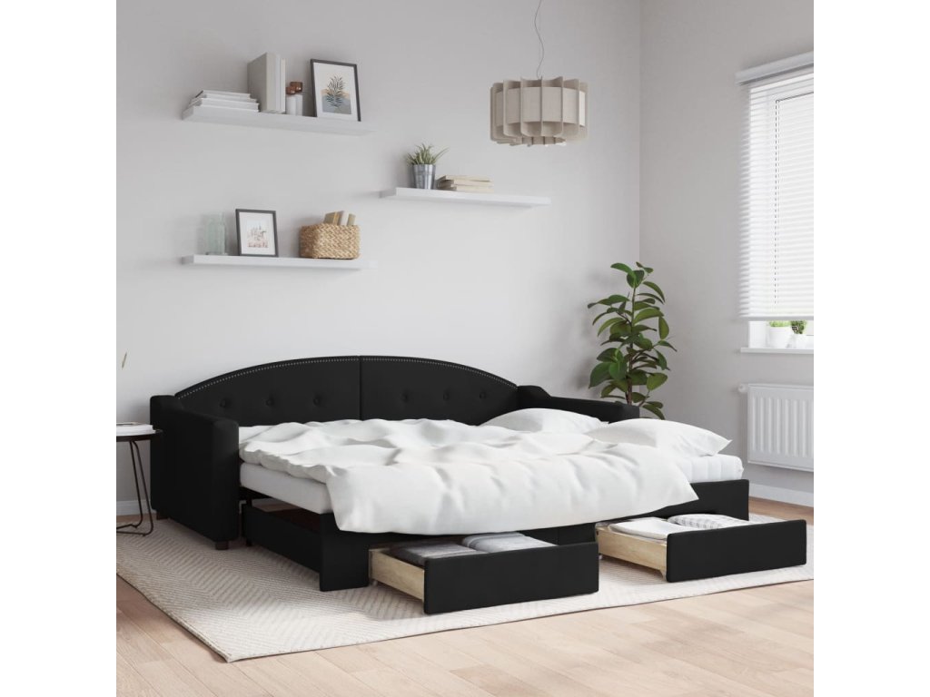 Válenda s přistýlkou a zásuvkami černá 90 x 190 cm textil 3197578