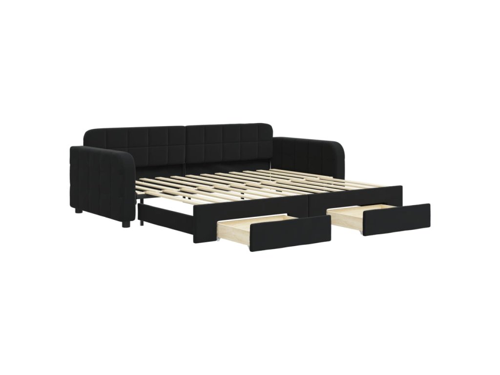 Válenda s přistýlkou a zásuvkami černá 90 x 200 cm samet 3196981