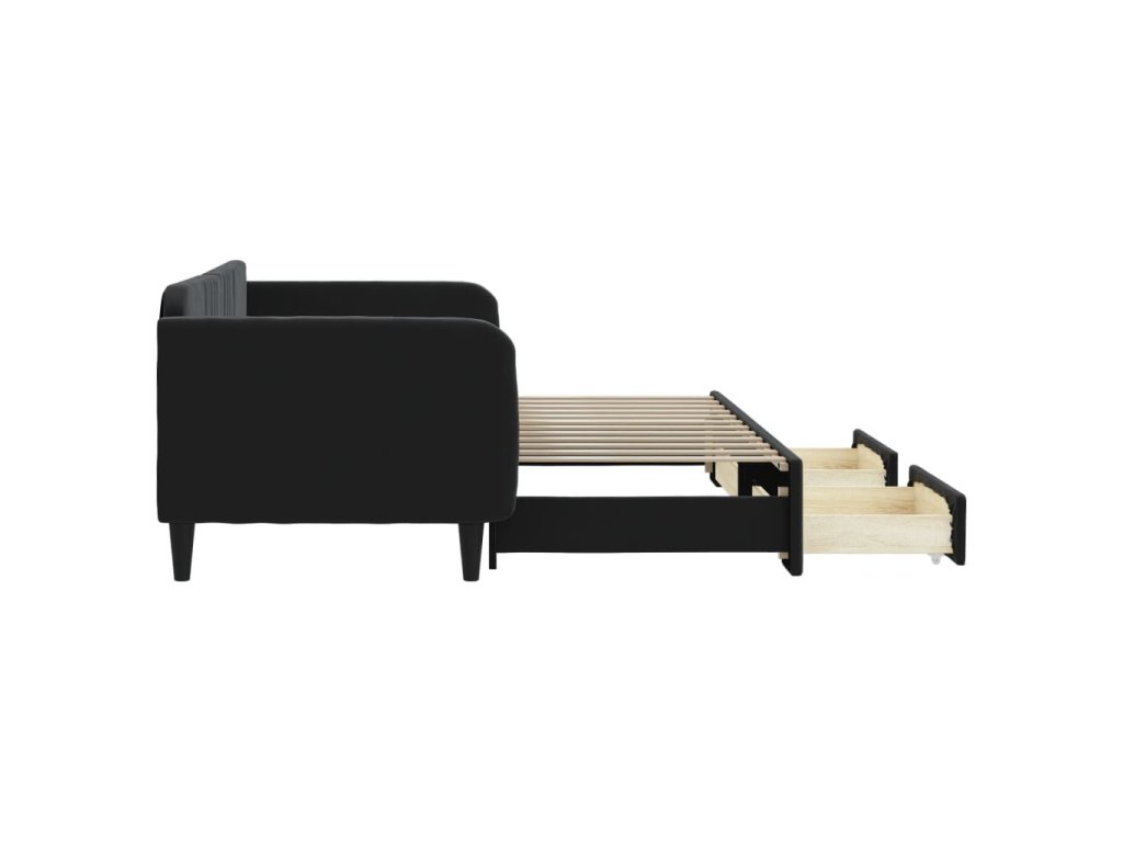 Válenda s přistýlkou a zásuvkami černá 90 x 200 cm samet 3197115