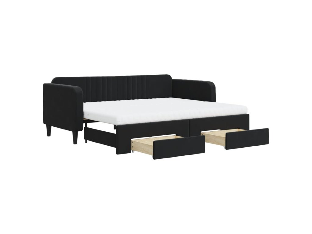 Válenda s přistýlkou a zásuvkami černá 90 x 200 cm samet 3197139