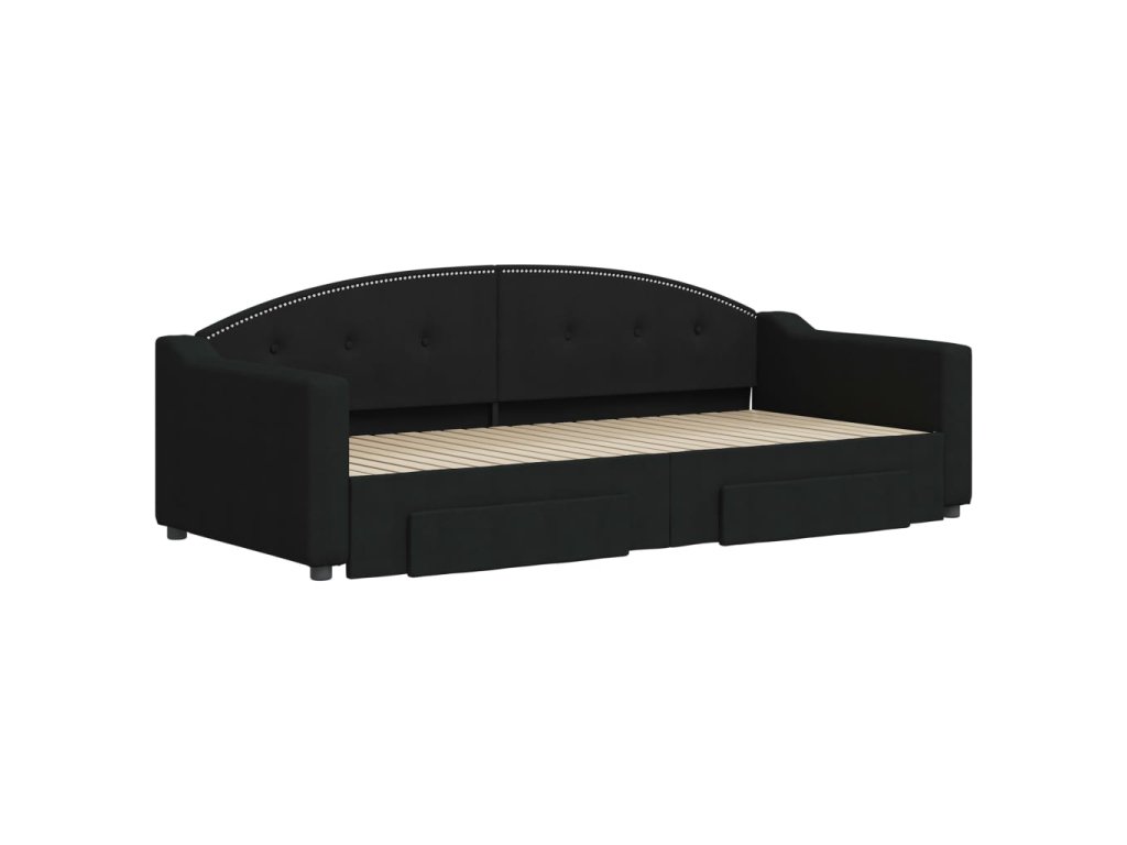 Válenda s přistýlkou a zásuvkami černá 90 x 200 cm textil 3197568