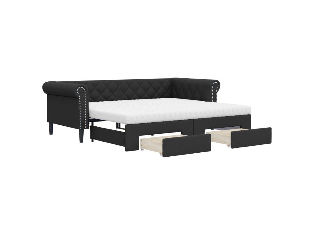 Válenda s přistýlkou a zásuvkami černá 90 x 200 cm umělá kůže 3197735