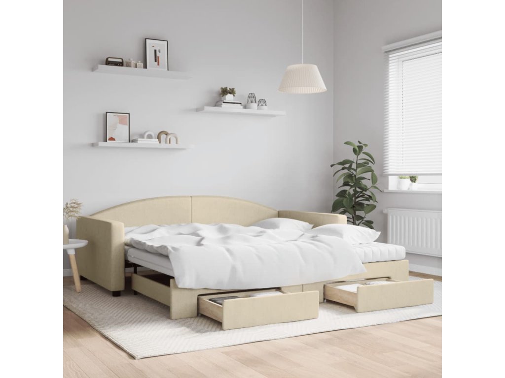 Válenda s přistýlkou a zásuvkami krémová 100 x 200 cm textil 3197251